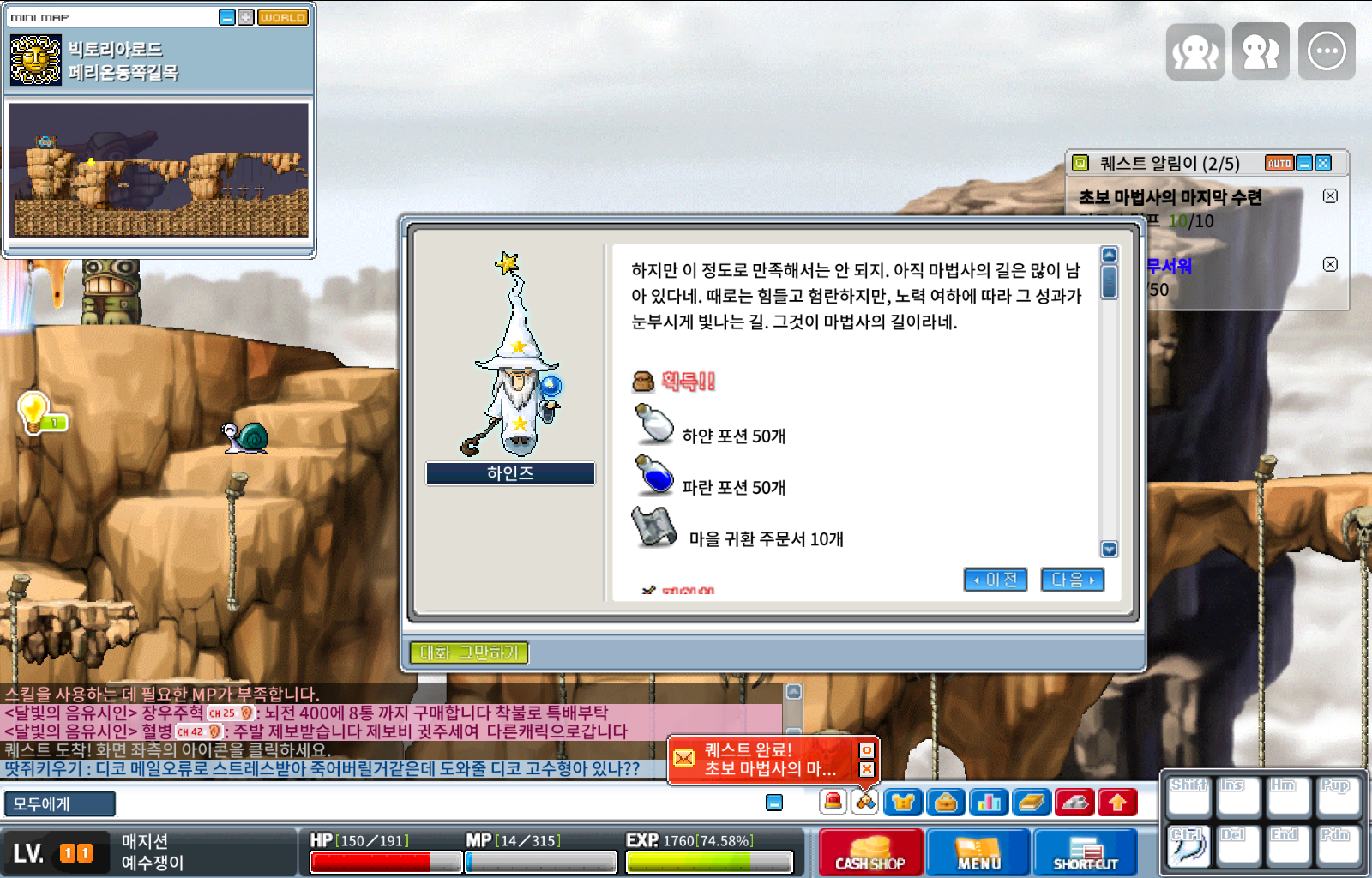대충 20마리, 35마리, 50마리 잡으면 퀘스트는 끝난다.